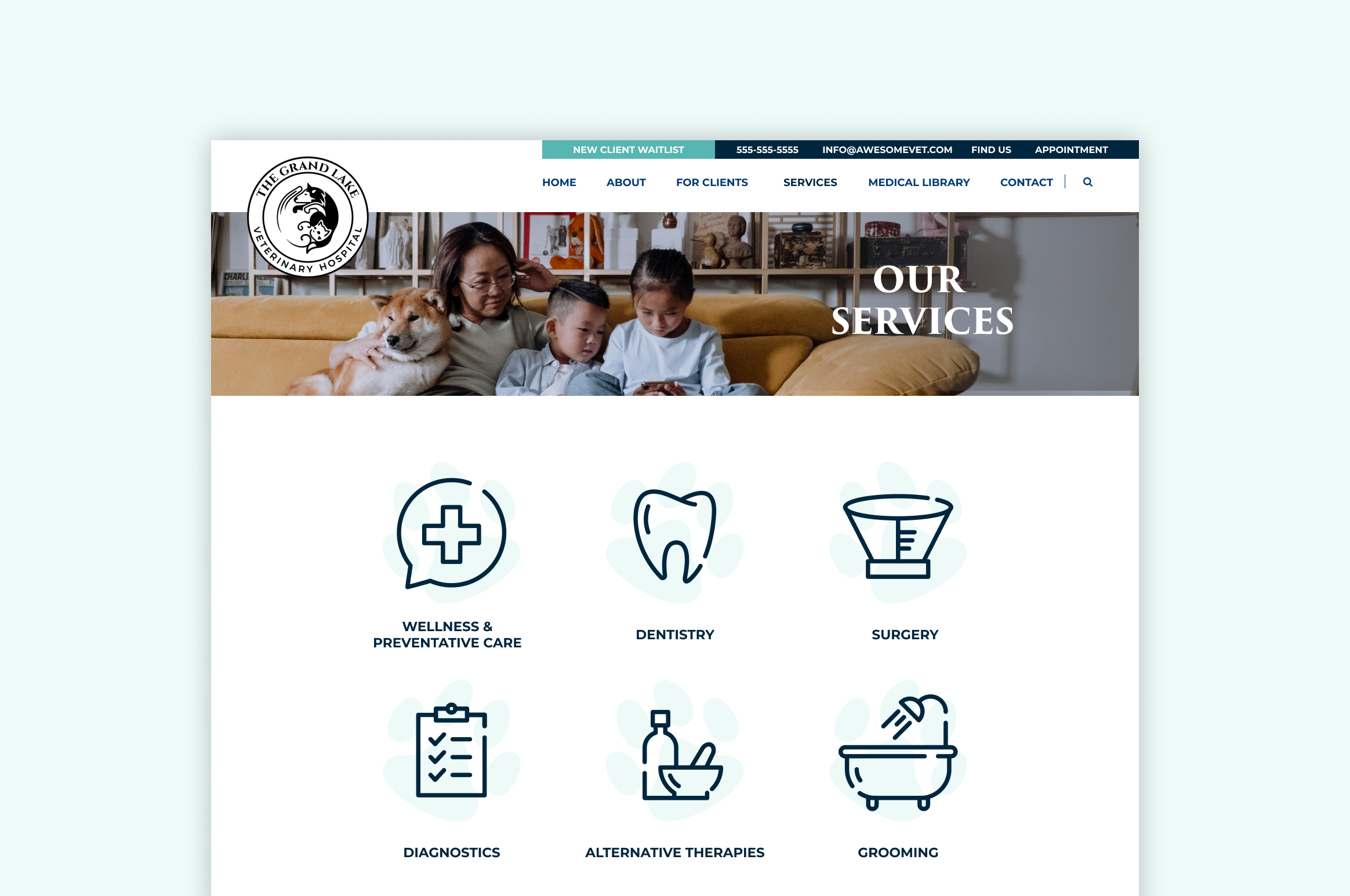 During my time at iVET360 marketing agency I have had the opportunity to create multitudes of websites for various clients. Each website starts as a wireframe in Figma, and then is built out using the client's colors, branding, and images. For each web project I collaborated with our team of developers to build out the site.